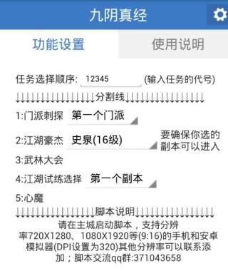 九阴真经手游自动任务辅助由腾牛网为玩家们提供下载。这款辅助工具专为九阴真经手游的玩家们打造,支持自动武林大会、心魔、刺探、江湖试练等等,超级方便!