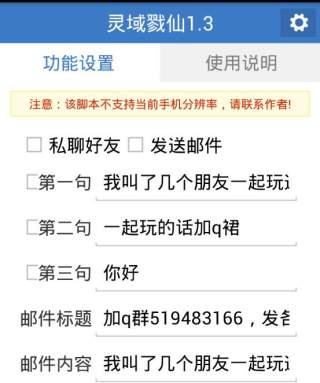 灵域戮仙喊话辅助是灵域戮仙手游的一款非常实用的自动喊话工具,这款辅助帮助玩家们自动喊话、私聊好友、发送邮件,需要的玩家们自行下载体验!
