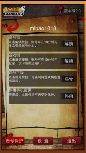 热血江湖手机密保是17Game公司最新推出的网络游戏《热血江湖》账号保护软件,为您的账号安全保驾护航。