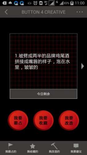 一个好的点或者是好的创意在工作中以及生活上都是很重要的,创意按钮让创意改变你的生活,可经由电脑生成数海量的创意点子,如果觉得不错可以拿来借鉴下。