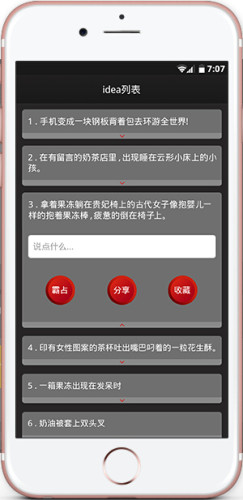 据了解,创意按钮APP是以产品进行分类,目前已细分为六十多类,基本涵盖了吃喝穿戴玩用行等方方面面,用户如果需要其他类别,则需要付费定制。目前每一类产品的创意数量从理论上而言达到三千的四次方,约8亿亿,而每位用户每天可以免费浏览81条创意。