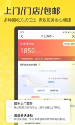 便捷服务:全国500家线下门店就近搜寻、上门回收、全国包邮快递回收