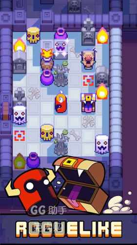 除了不同种类的敌人,游戏场景中还有各种障碍、机关、陷阱多多,例如要捡取钥匙才能打开的门,会喷火的陷阱,引爆九宫格范围的炸弹等等,我们也可以利用陷阱来对付怪物。要注意的是,主角攻击敌人或障碍物后,该回合不会位移,不过相信喜欢回合制游戏的玩家,一定可以好好利用地形发挥策略。